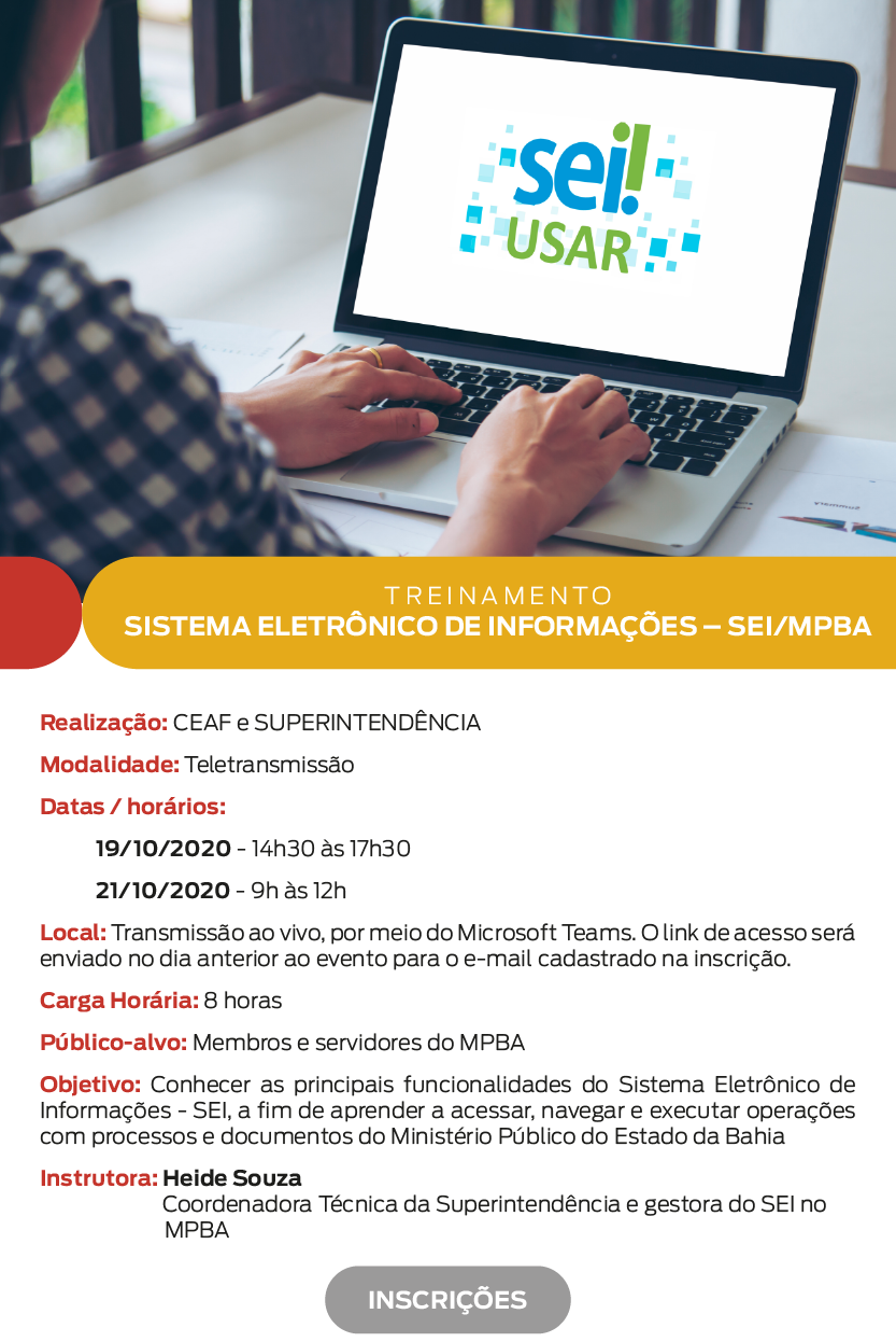 | Título: | Treinamento: Sistema Eletrônico de Informações - SEI/MPBA |